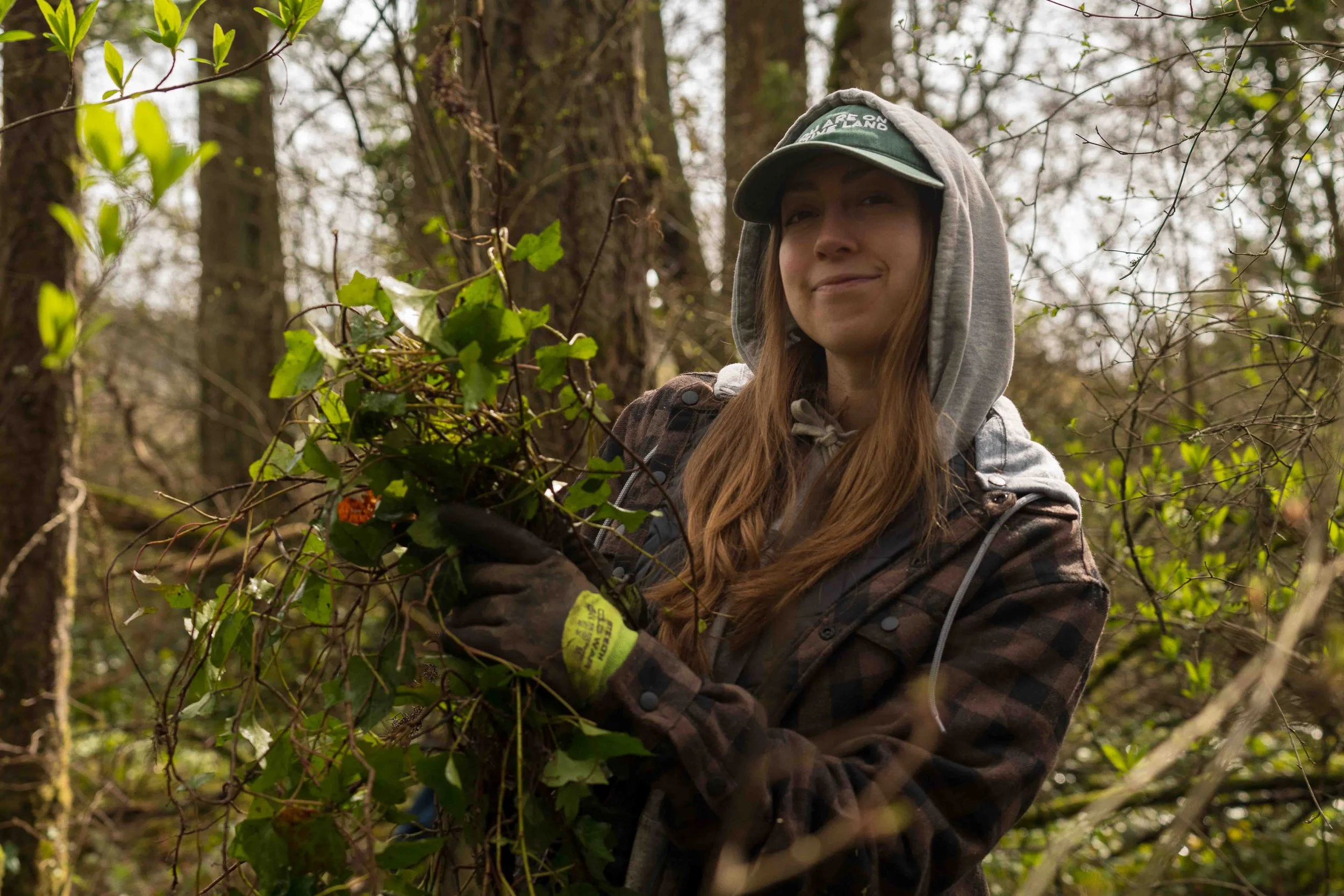 Leading this work is Sarah Jim, a proud member of the W̱SÁNEĆ Nation. Sarah is an artist and language learner who is deeply passionate about land stewardship through ecosystem restoration. Sarah’s project brings family, friends, allies, and volunteers together who are dedicated to healing one of the last remaining forests on the W̱S͸ḴEM reservation located on the lands of the Jim family. While Sarah guides this work on her family's lands, HAT supports this work through operative support, volunteers, and time spent in the field.
